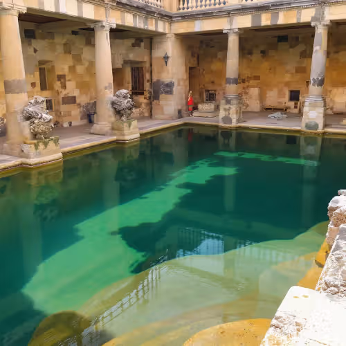 The Roman Baths’ Great Bath is lined with 45 lead sheets and is 1.6 metres deep, the pool is fed directly by the Sacred Spring. citeturn4search0