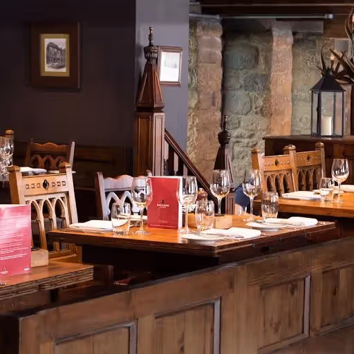 Enter an intimate, atmospheric dining room set within a historic chapter house, with timbered ceilings and rich furnishings that shape the mood. Staff are well informed about the building’s story and deliver attentive, polished service that suits both quiet meals and celebratory gatherings. Seating ranges from cosy tables to the distinctive round table upstairs, which lends a theatrical element to group meals. Additional experiences include themed meals and practical cooking classes in a purpose-built teaching kitchen, ideal for curious diners and small groups seeking something different from the usual city restaurant.