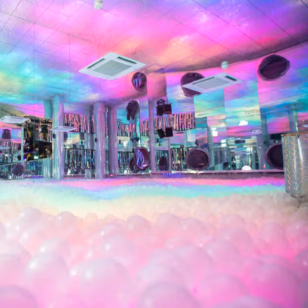 A grown-up playground of neon, music and ball pits, perfect for lively nights out.