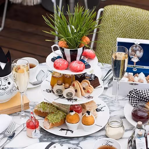 Expect a theatrical, family-friendly afternoon tea wrapped in Alice in Wonderland motifs: quirky crockery, 'drink me' touches and optional dress-up for children. Portions are generous, tea is routinely topped up, and staff are practised at explaining each element, with staff such as Filip and Jose frequently singled out in reviews. The setting sits within the Sanderson hotel, offering a polished backdrop that balances playful design with thoughtful service.