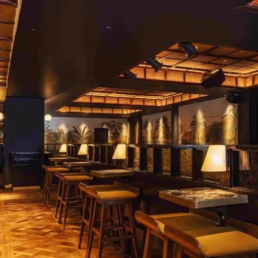Expect a tucked-away entrance that signals the start of an immersive night, dim, elegant interiors, and seating that ranges from stools at the curved bar to cosy booths. Cocktails arrive as crafted presentations, bartenders are confident and welcoming, and live jazz or small bands set the pace. The venue is atmospheric and lively rather than loud, snacks are limited, and the crowd skews toward curious locals and visitors seeking a memorable evening.