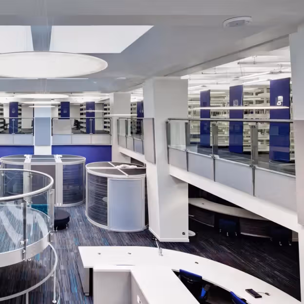 Predominantly quiet spaces set up for concentrated work, with clusters of desks and study carrels. Staff support is usually available for enquiries. Some rooms are arranged for group work while others are strictly silent. Dress for a study-focused environment and bring headphones for shared areas.