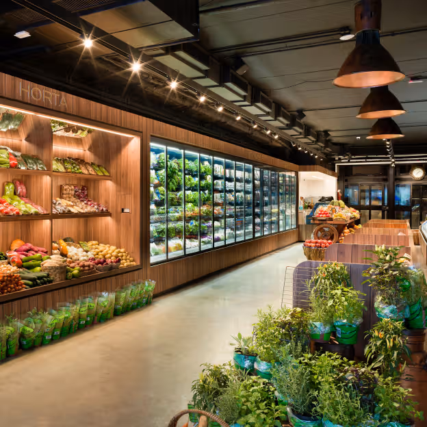 A practical market-style layout with stalls and counters arranged for short visits. Vendors are often producers or their reps, ready to explain provenance and storage. Products are labelled by season or harvest rather than brand-heavy packaging, so items feel straightforward and authentic.