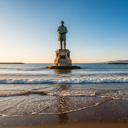 The seafront bronze statue of Domenico Modugno, about three metres tall, was installed in 2009 and is by the Argentine sculptor Hermann Mejer.
