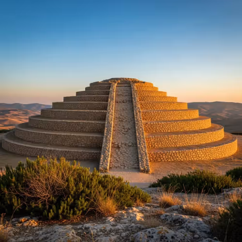 Monte d’Accoddi, a pre‑Nuragic stepped altar just outside the city, was built between 3500 and 2900 BCE and is climbed by a 42 metre ramp to a terrace about 10 metres high.