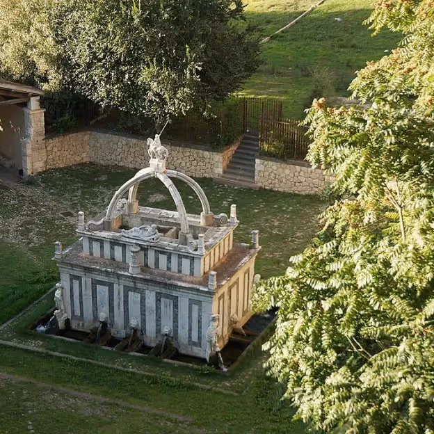 A compact, ornate fountain set in a small plaza. You will see sculpted figures, patterned stonework and shallow water basins. The area is mostly paved and easy to approach on foot, with cafés and narrow streets close by. Expect a steady flow of passers-by rather than a large organised attraction.