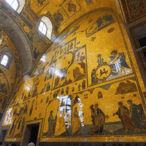 Monreale’s scale is tangible: its medieval mosaics cover about 6,500 square metres, made with an estimated 2.2 tons of gold, recently refreshed by a conservation project.