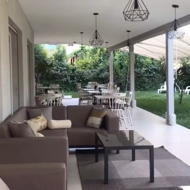 A staffed beach club with rows of sunloungers and umbrellas, direct access to the water, and a modest menu of Mediterranean dishes and drinks. The setting is practical rather than flashy, aimed at people who want comfort and a clear sea view without fuss.