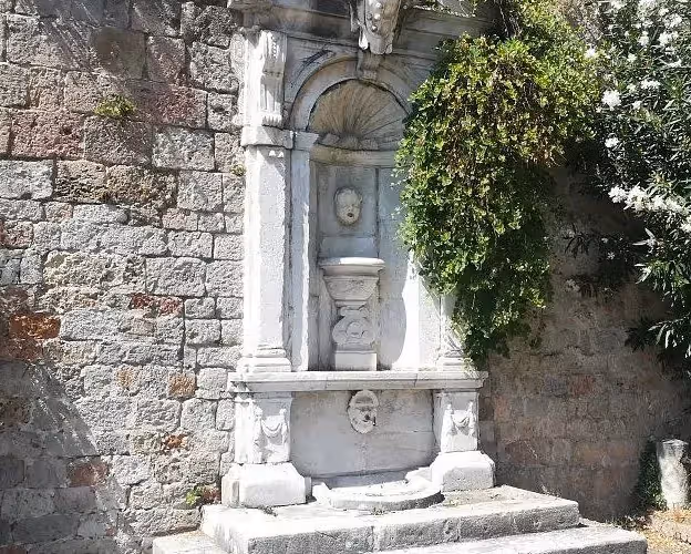A compact, ornamental fountain with carved childlike figures and a shallow basin. The sculpture shows wear from time and weather, which adds texture rather than polish. Expect a calm presence in the square, often used as a photo subject or a short pause between larger sights.