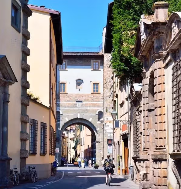 A narrow 13th-century gateway tucked inside Lucca’s later walls