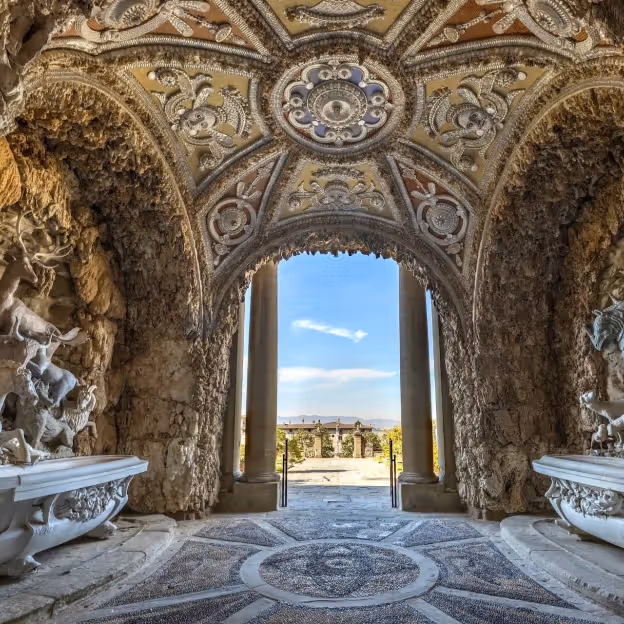Expect a structured layout of terraces, formal paths and stone fountains. You will see organised flower beds, citrus plantings and sculptural details set against clipped hedges and shaded avenues. The site favours measured views and short walks rather than long trails.