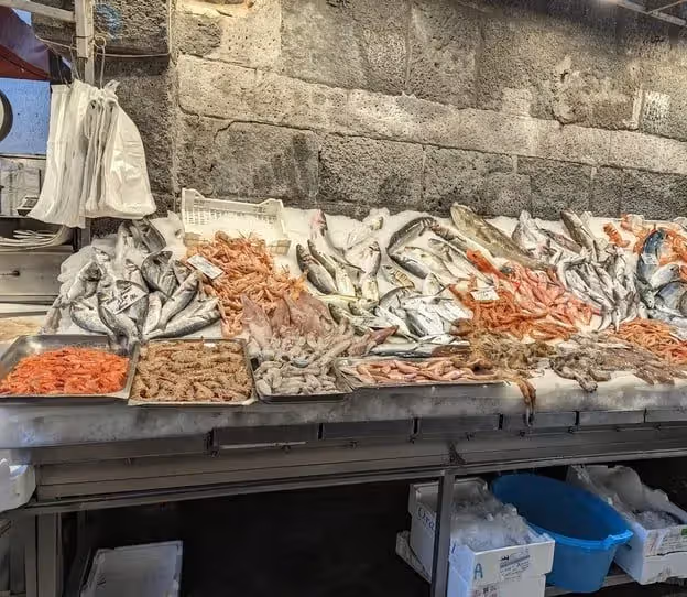 Rows of stalls selling seasonal fruit and vegetables, cured meats, cheeses and ready-to-eat items. Expect friendly vendors, the smell of espresso and cooking, and a lively, practical atmosphere rather than tourist spectacle. Some stalls focus on prepared food you can eat at nearby tables or take away.