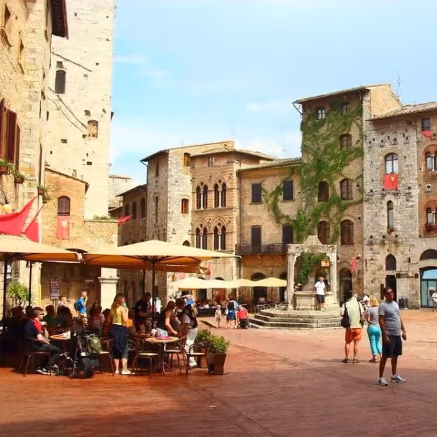 Aim to include the piazza in a short walk through the town centre. Try a gelato from one of the shops and pause on the cistern steps to take it in. Wear shoes suited to brick paving and a slope. Allow extra time for photos and for any short queues at the gelaterias. Combine the visit with a stroll along the Via Francigena or a climb of one nearby tower if you want wider views.