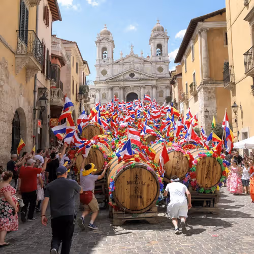 On the last Sunday in August, the Bravìo delle Botti sees eight districts push 80 kg wine barrels uphill for about 1.8 kilometres through the historic centre to the Cathedral porch in Piazza Grande.