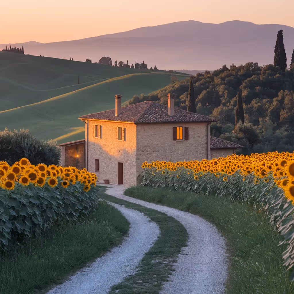 Float above Tuscany at first light