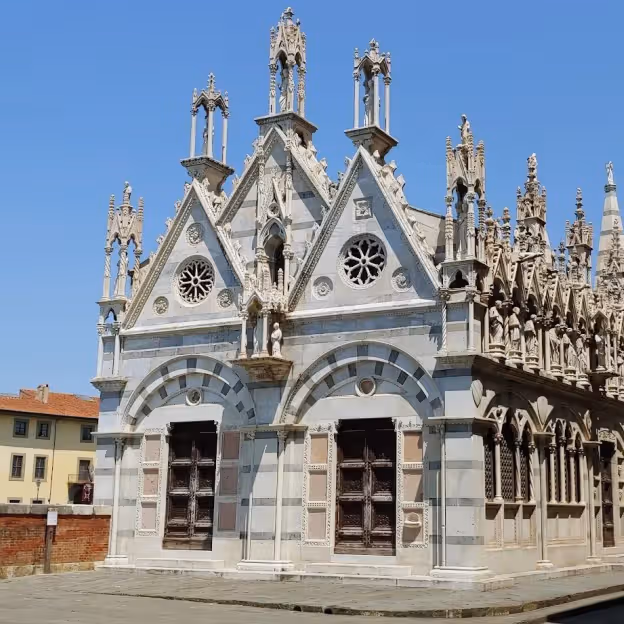 A small Gothic chapel on the Arno, notable for its carved stonework and riverside setting.