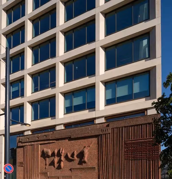 A modern relief tucked into the city fabric.